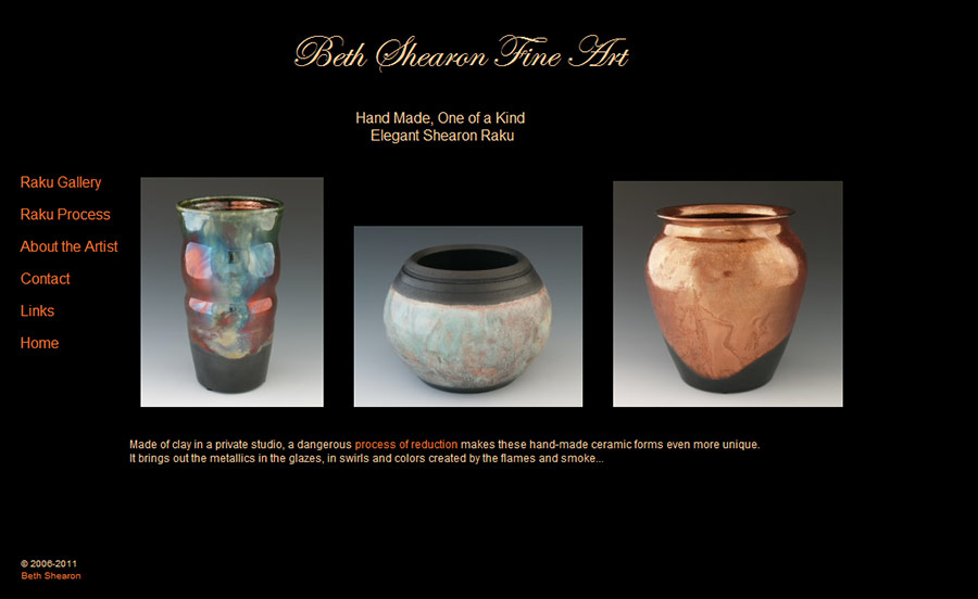 Beth Shearon Fine Art: Custom Commercial Fine Art Website created with PHP