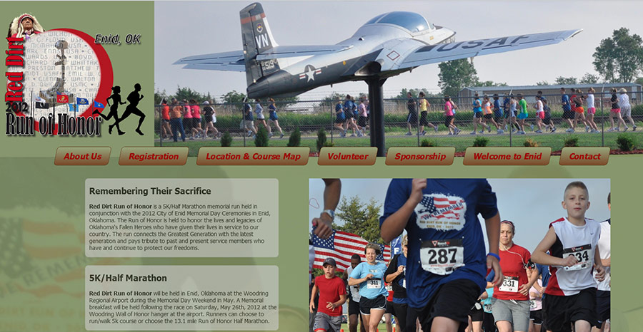 Red Dirt Run of Honor: Custom Responsive Event Website created with PHP, CSS3, a JavaScript image slide show, and a JQuery animated sponsor bar