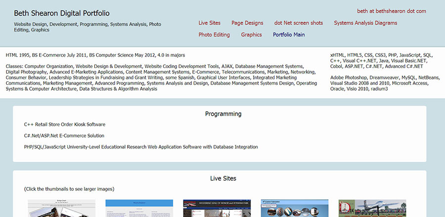 This site is live: http://bethshearon.com/webportfolio/index.php